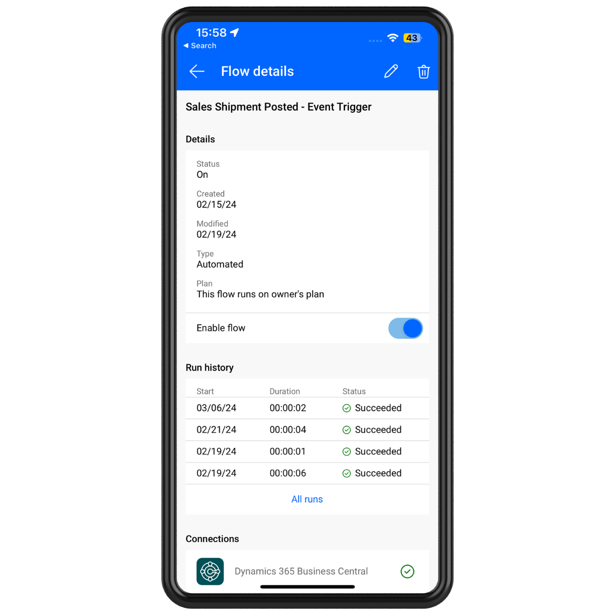 Keep in mind this data can be sent back to your other systems using Power Platform’s many connectors, where it can be analyzed and optimized for future operations