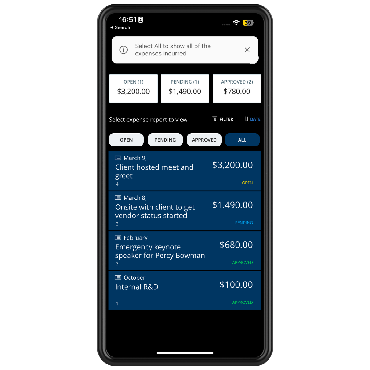 You can review, approve, or reject approval requests from within the app in the separate approvals tab